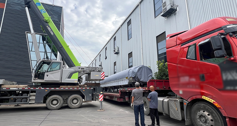 • R60原味炒機(jī)跟配套線設(shè)備吊車輔助裝車發(fā)貨